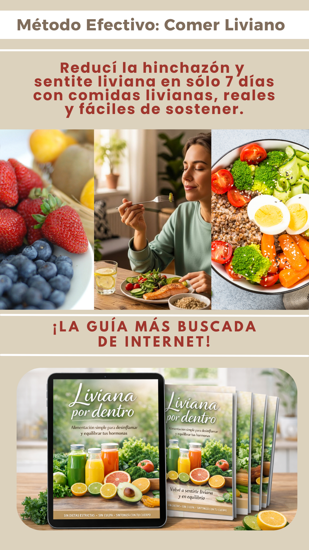 No. Esta guía no es una dieta ni propone conteo de calorías o prohibiciones. Es un enfoque de alimentación liviana y consciente, adaptable a tu rutina, tus gustos y tu momento personal 🤍