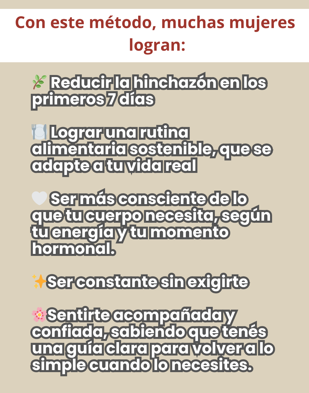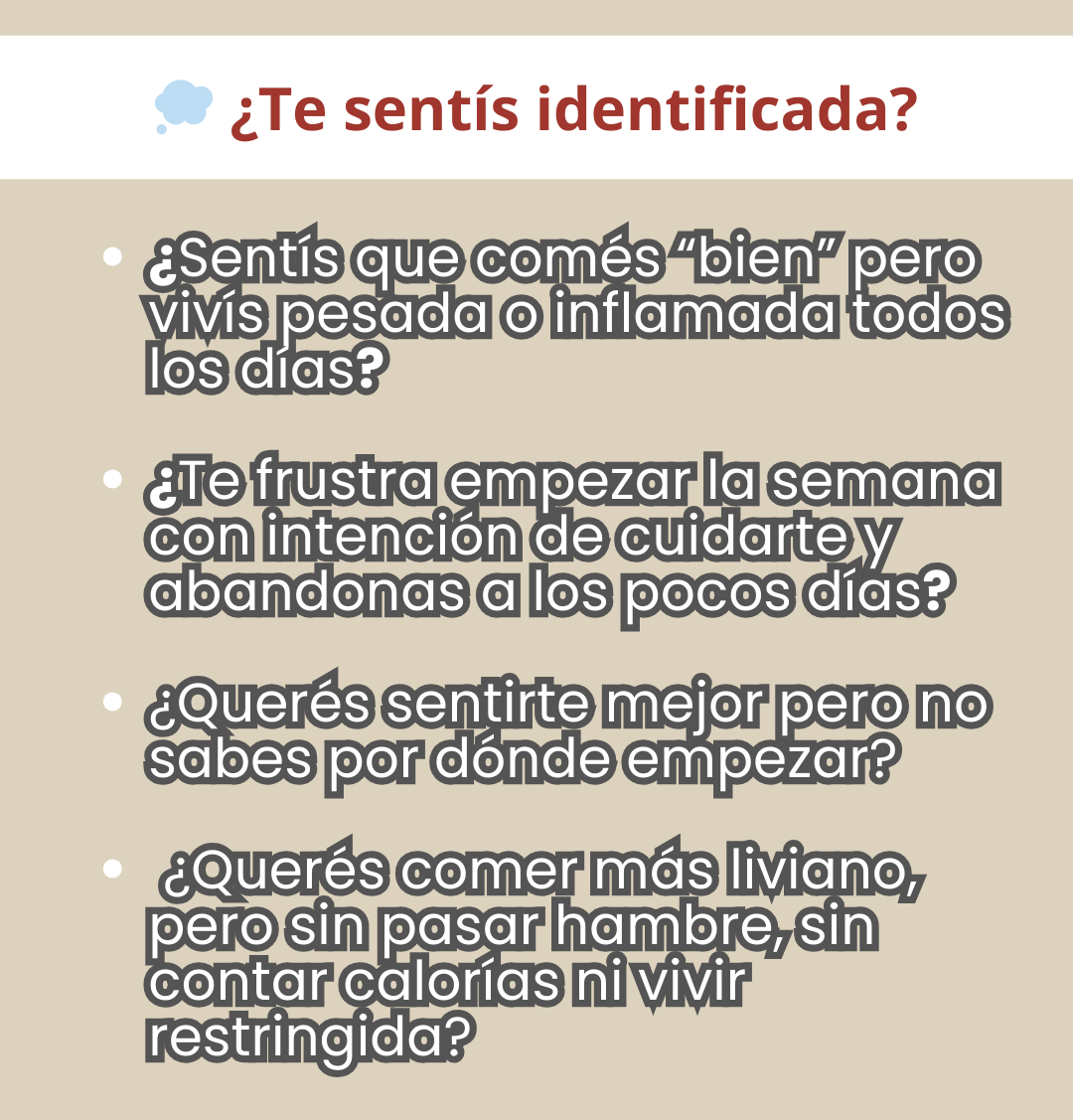 Con pequeños cambios y comidas más simples, mi cuerpo respondió rapidísimo” – Sofía A.“Me organizo mejor y sin estrés. Antes improvisaba todo y ahora tengo ideas, eso me ahorra energía mental todos los días.” – Valeria R.
